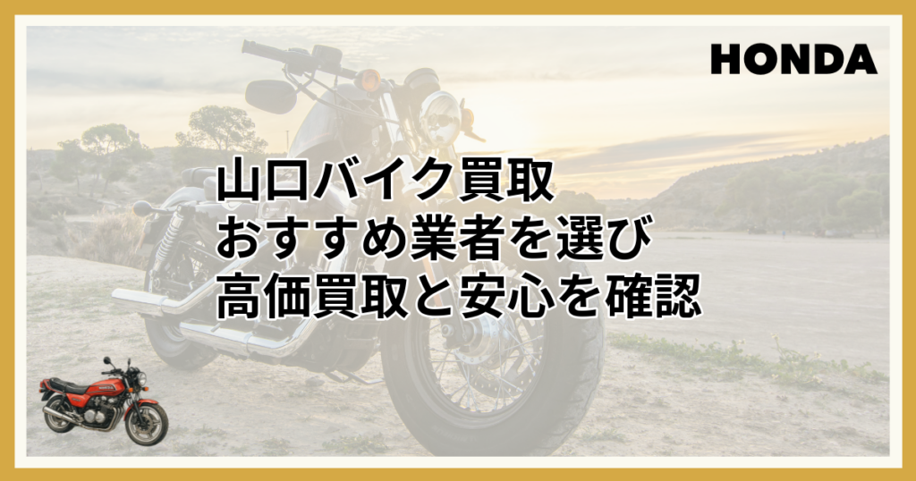 山口でバイクを売りたいけど、どこに頼めばいいんだろう? 初めてのバイク売却で、何から始めればいいか分からない… 安く買い叩かれたり、手続きが面倒だったりしないか心配… 自分のバイクの価値を正しく評価してくれる業者を見つけたい… バイクの売却は、...