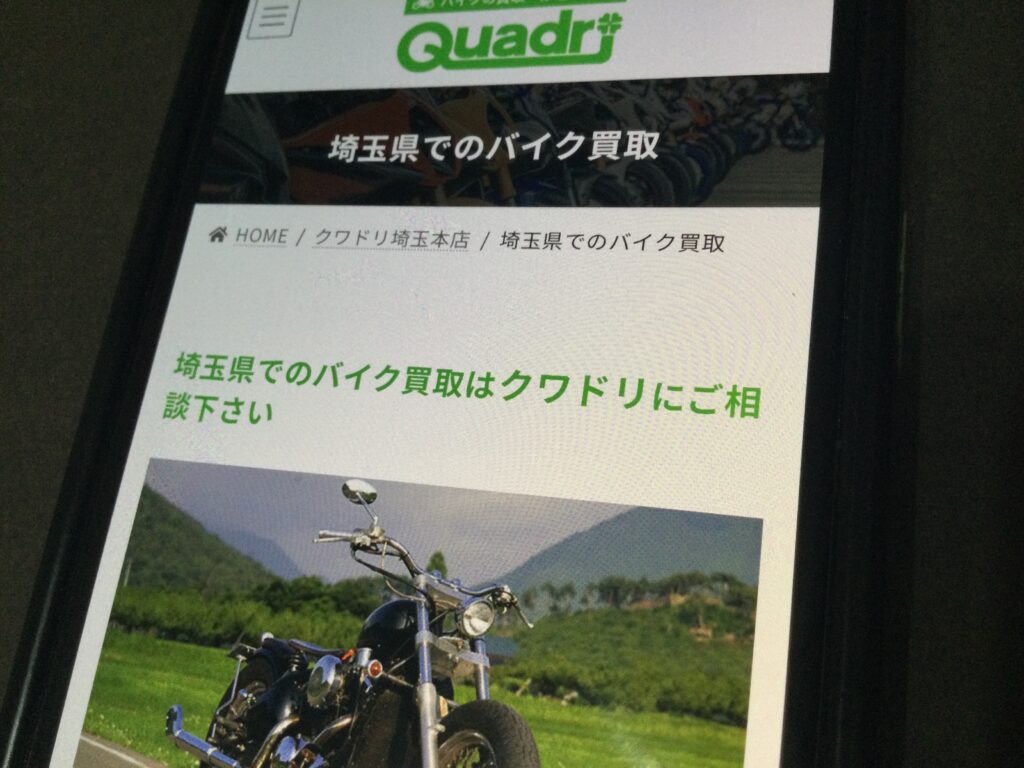 株式会社クワドリ埼玉本店は埼玉県比企郡鳩山町に位置する、バイク買取の専門店です。