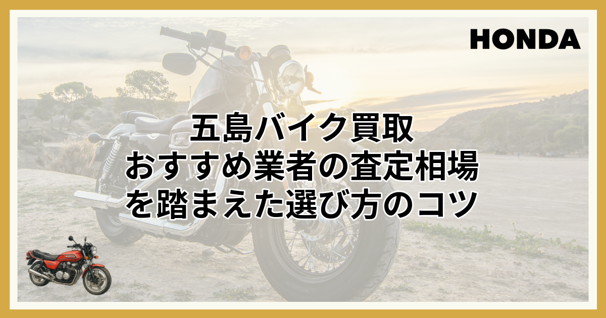 この記事では、五島エリアに対応しているおすすめのバイク買取業者を厳選してご紹介します。業者選びのポイントも詳しく解説しますので、ぜひ最後までご覧いただき、後悔のないバイク売却を実現してください。