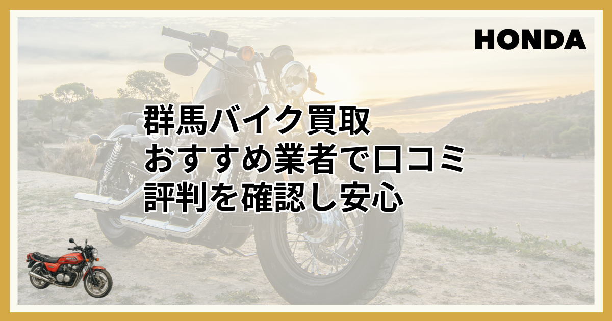 この記事では、群馬で評判のバイク買取業者を厳選してご紹介します。各社の特徴や強みを比較し、あなたにぴったりの業者を見つける手助けとなれば幸いです。