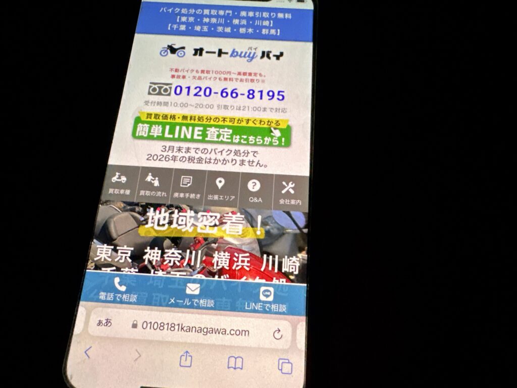 • 放置バイクや故障バイクでも最大1万円の買取が可能。手間いらずの簡単査定で、電話やLINEを通じ簡単に申込みができます。