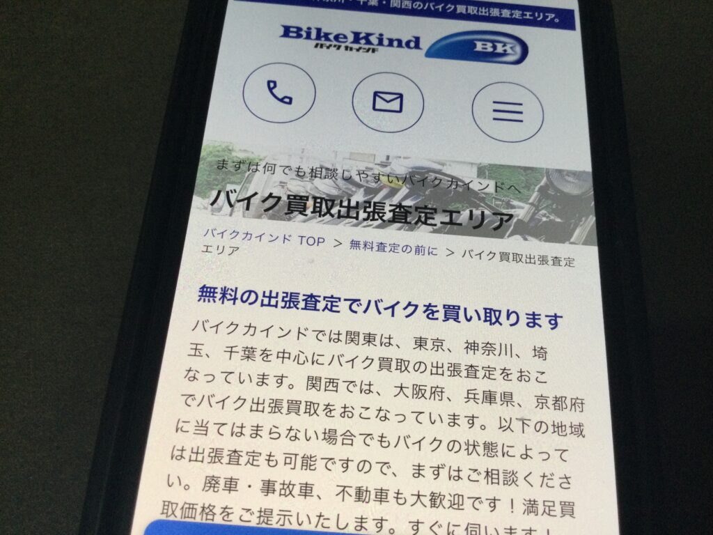 また、出張対応エリアは神奈川県や東京都、埼玉県、千葉県など広範囲に及び、売りたいバイクがあれば即日現金買取の実績があります。