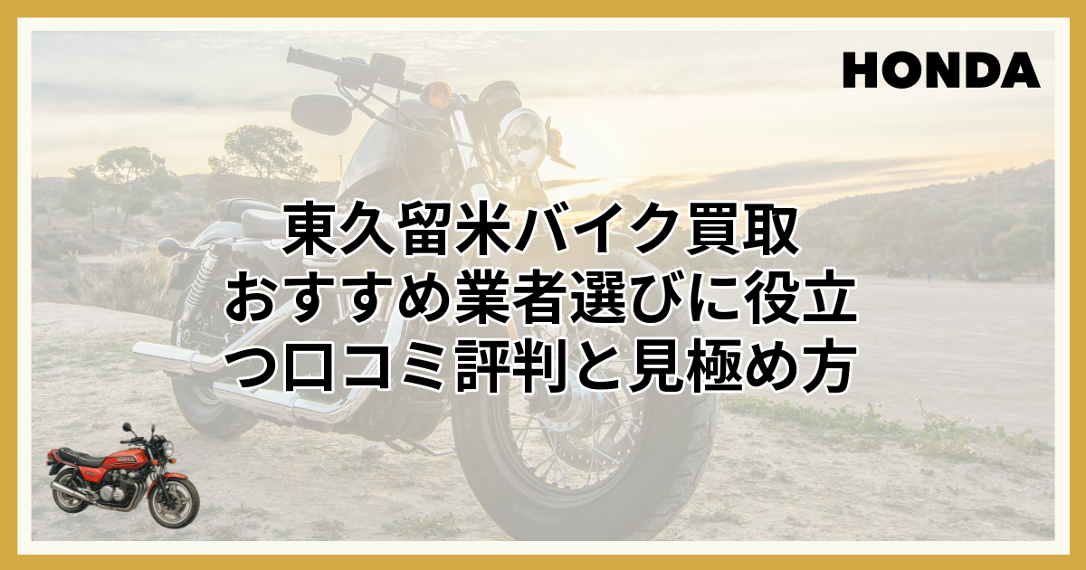 この記事では、東久留米エリアでおすすめのバイク買取業者を厳選してご紹介します。それぞれの業者の特徴や強みを比較し、あなたのバイクと状況に最適な一社を見つける手助けとなれば幸いです。