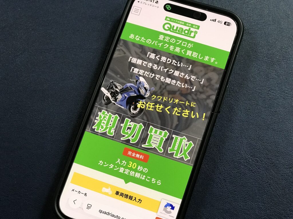 - クワドリは埼玉県と静岡県で展開中のバイク買取専門店で、事故車や不動車でも高価買取が可能です。