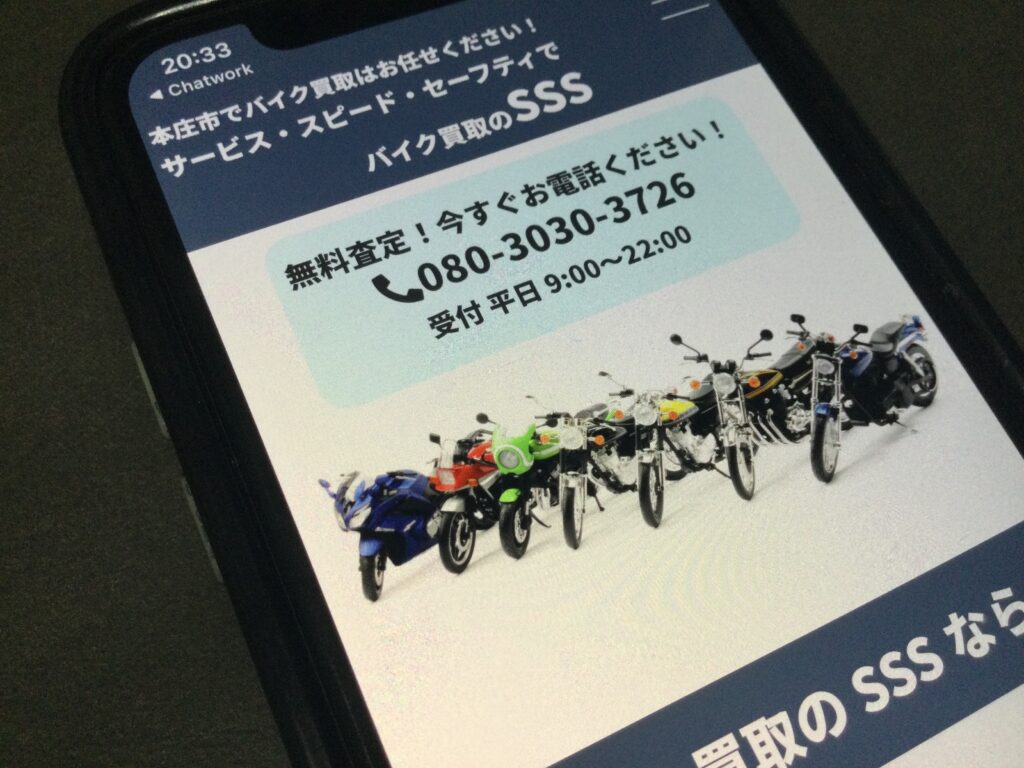 • 本庄市を中心に、事故車や不動車を含むバイク買取を専門に行い、高値買取を約束するSSSは、独自の査定システムを導入しています。