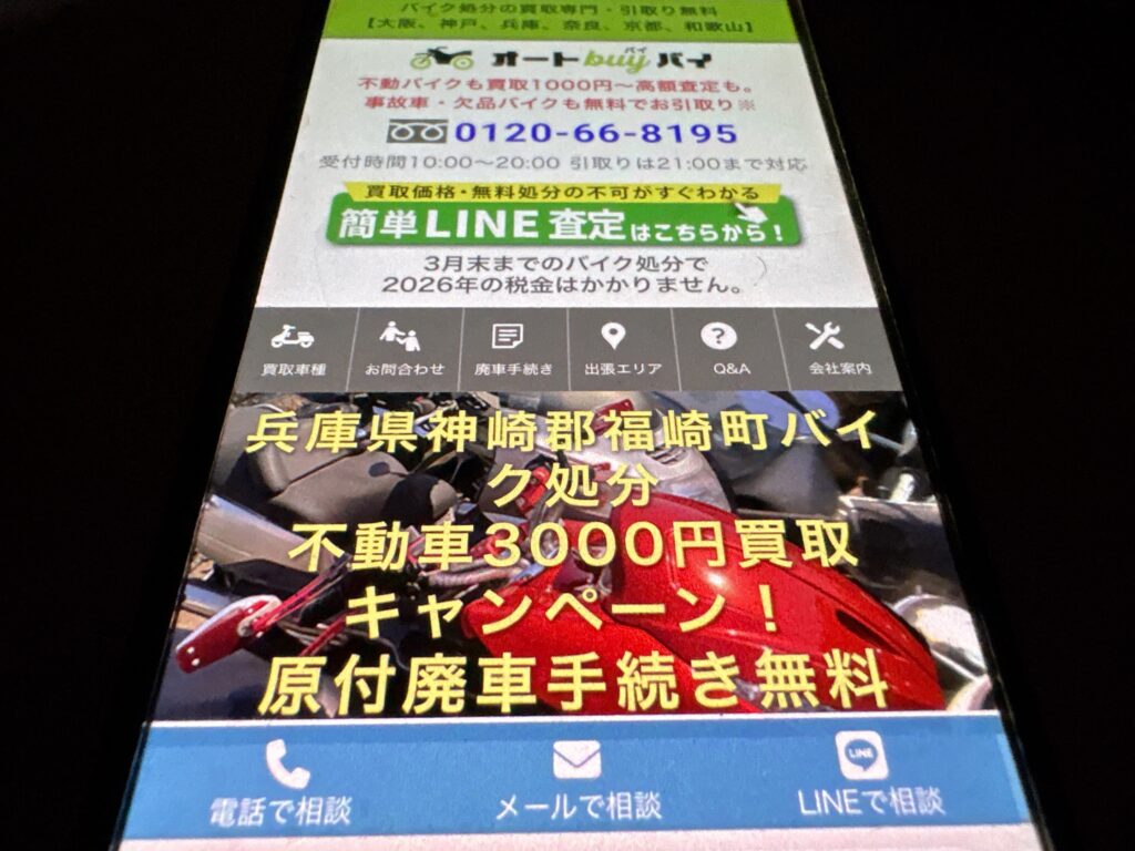 - 不動バイクの買取は1000円から可能で、キャンペーン中は3000円買取を実施中