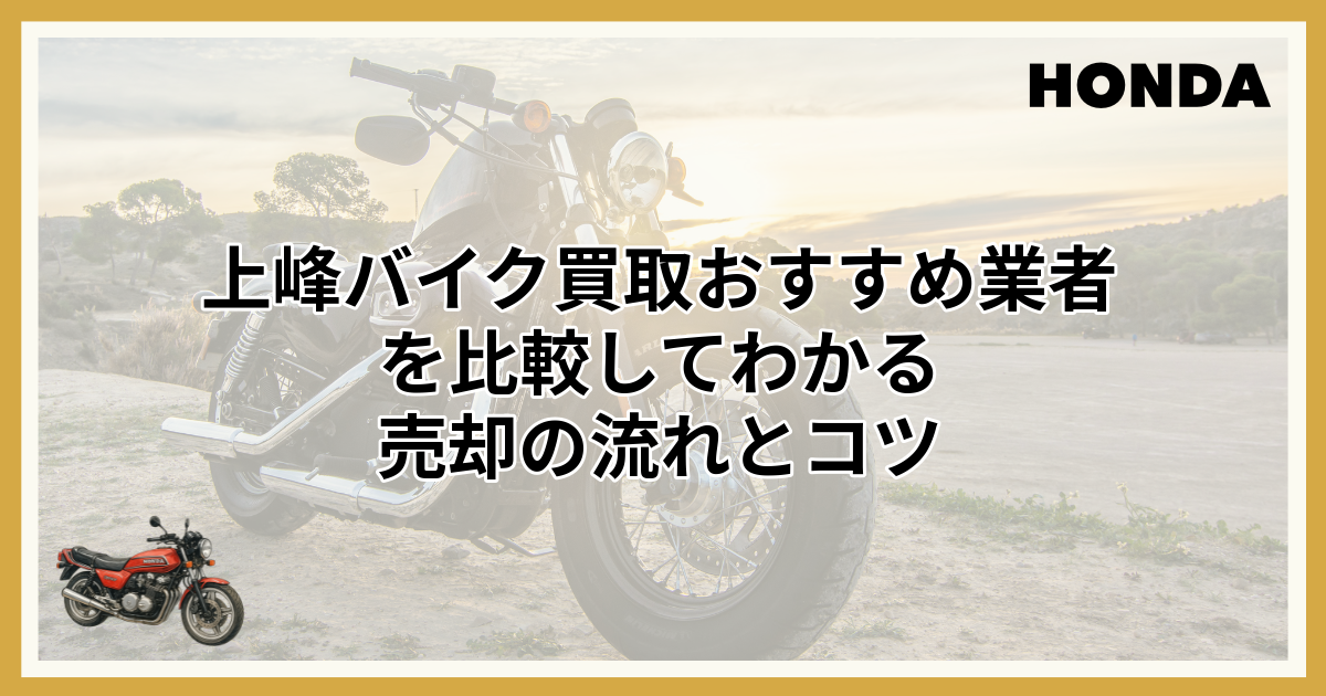 この記事では、上峰エリアでおすすめのバイク買取業者を厳選してご紹介します。各業者の特徴やサービス内容を詳しく解説しますので、ぜひ参考にして、あなたのバイク売却を成功させてください。
