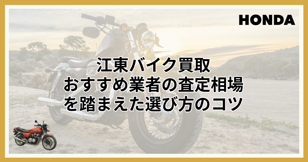 この記事では、江東区でおすすめのバイク買取業者を厳選してご紹介します。それぞれの業者の特徴や強みを比較し、あなたにぴったりのパートナーを見つける手助けとなれば幸いです。