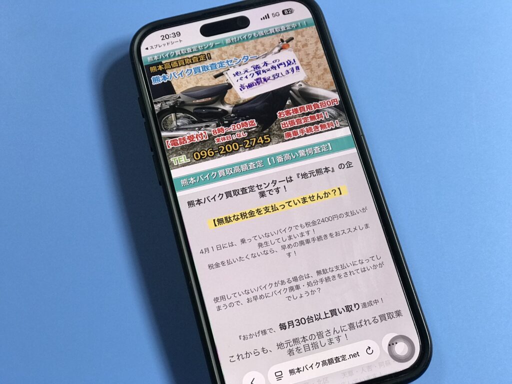 熊本バイク買取査定センターは、熊本県熊本市に本拠を置く地域密着型のバイク買取専門店であり、原付バイクの高額査定が特長です。