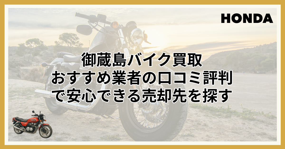 この記事では、御蔵島で評判の良いバイク買取業者を厳選してご紹介します。各業者の特徴や強みを比較し、あなたに最適な一社を見つける手助けをします。ぜひ、最後までご覧いただき、後悔のないバイク売却を実現してください。