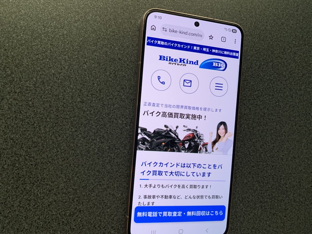 バイクカインドは埼玉県新座市に位置し、東京都・神奈川県・埼玉県を中心に無料出張査定を行うバイク買取専門店です。