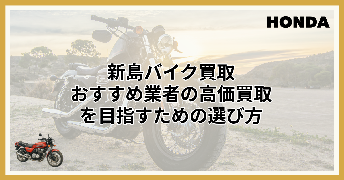 この記事では、新島エリアでおすすめのバイク買取業者を厳選してご紹介します。各社の特徴や強みを比較し、あなたのバイクと希望に合った最適な業者を見つける手助けとなれば幸いです。