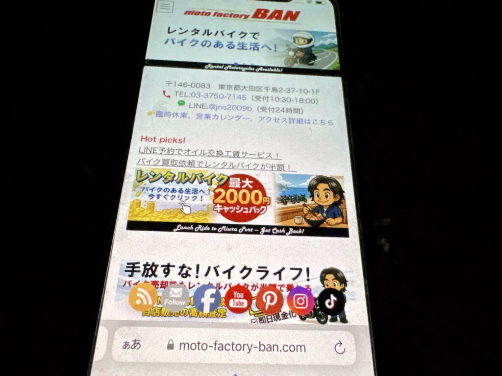- moto factory BANでは、高価買取やレンタルサービスを提供し、バイク愛好家のニーズに応えています。LINE予約でオイル交換工賃が無料になる特典も!