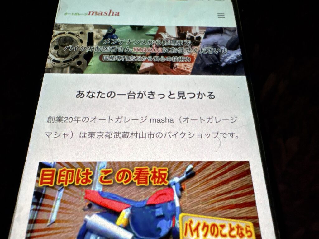 バイクショップ オートガレージmasha(マシャ)は、東京都武蔵村山市に位置し創業19年の信頼のバイクショップです。