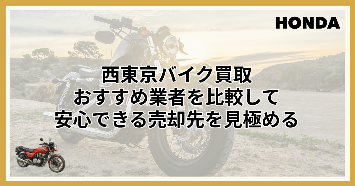 ご安心ください。この記事では、西東京エリアで信頼できるバイク買取業者を厳選してご紹介します。各業者の特徴や強みを比較検討することで、あなたのバイクを最高額で売却するためのお手伝いをします。