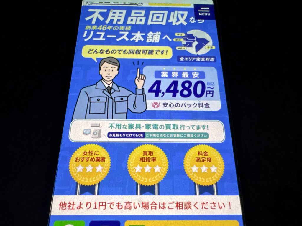 リユース本舗は不用品回収・粗大ゴミ処分を専門とし、即日最短25分で対応する企業です。