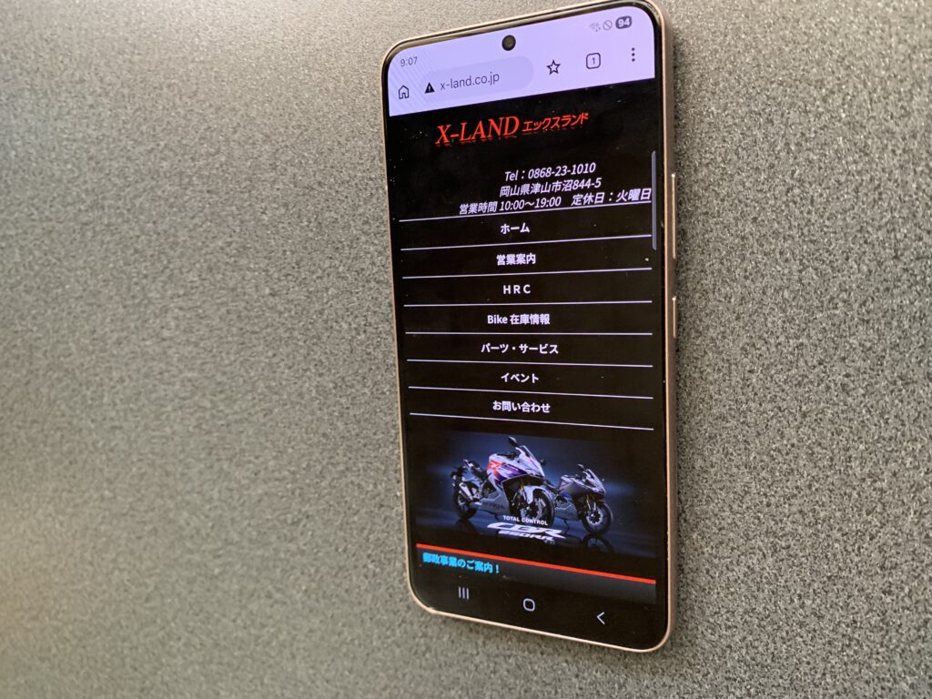 株式会社エックスランドは岡山県津山市に位置する、Honda二輪車の正規取扱店です。