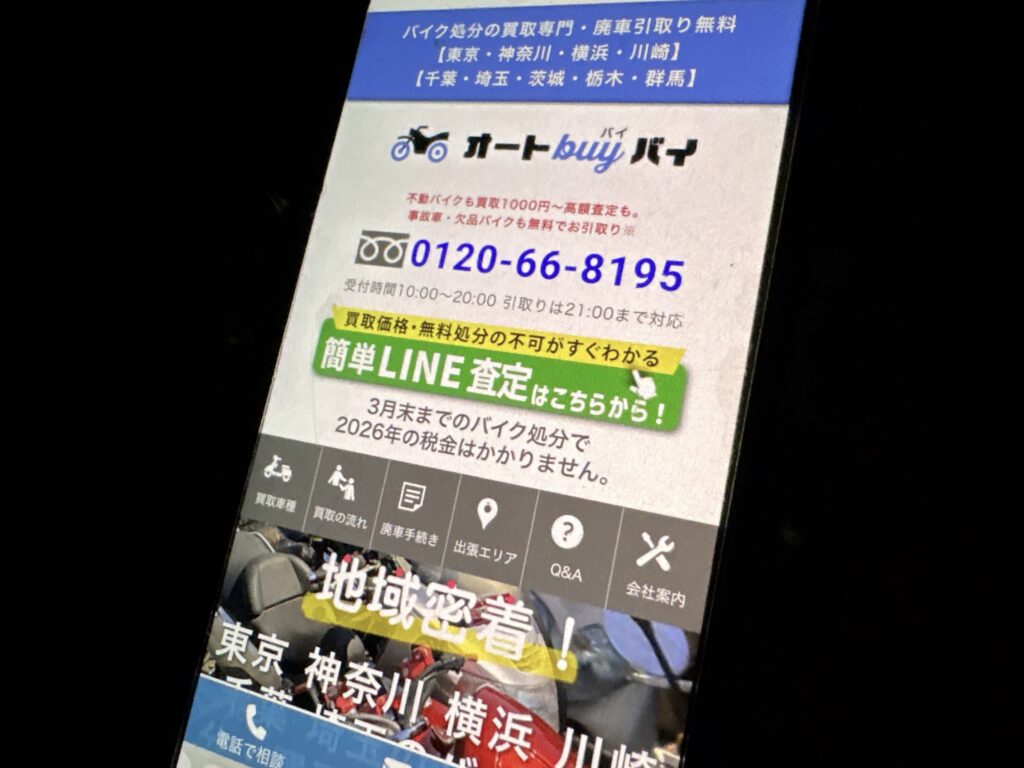 株式会社1plus1が運営するオートバイバイは、東京・神奈川を中心にバイク処分と買取サービスを提供しており、20年の実績を誇ります。