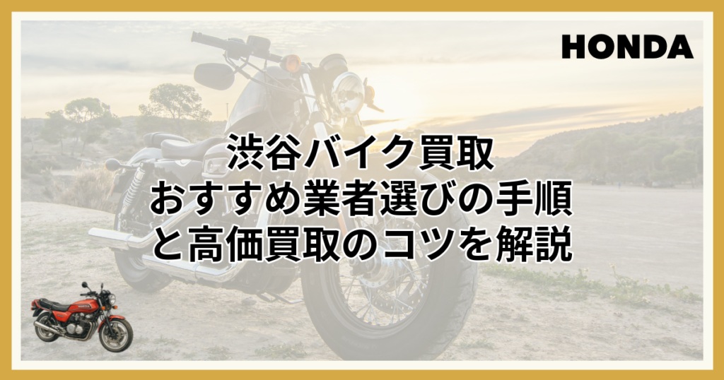 渋谷で愛用のバイクを売りたいけれど、どの買取業者に依頼すれば良いか迷っていませんか? 初めてバイクを売るから、何から始めればいいか分からない… 安く買い叩かれたり、悪質な業者に騙されたりしないか心配… 仕事が忙しくて、手続きに時間をかけられな... -