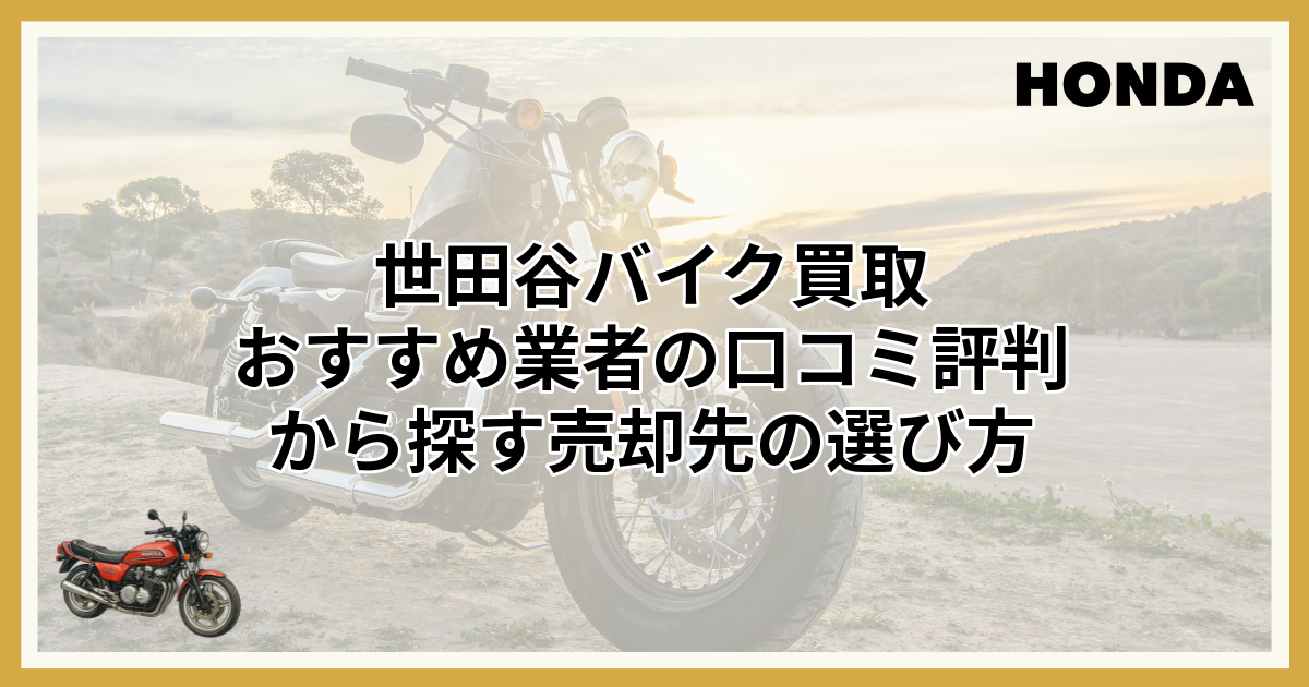 この記事では、そんなあなたの不安を解消するために、世田谷エリアで信頼と実績のあるバイク買取業者を厳選してご紹介します。各社の特徴や強みを比較し、あなたにぴったりの業者を見つけるお手伝いをします。